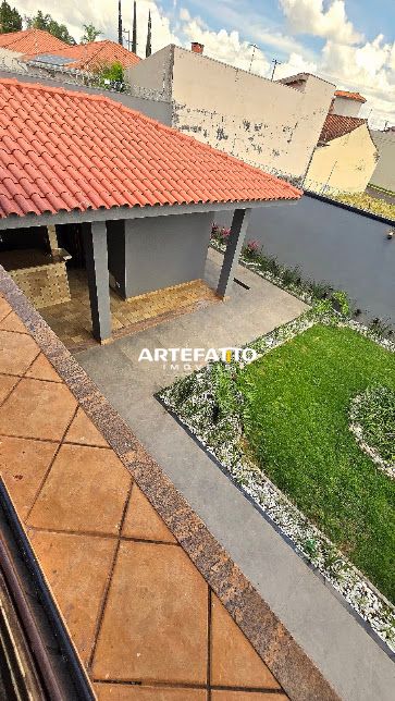 - Área de churrasco numa ampla varanda com jardim/quintal