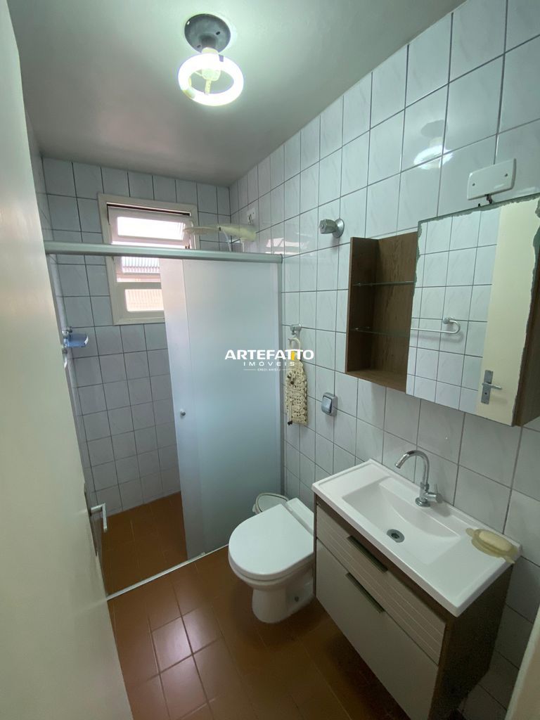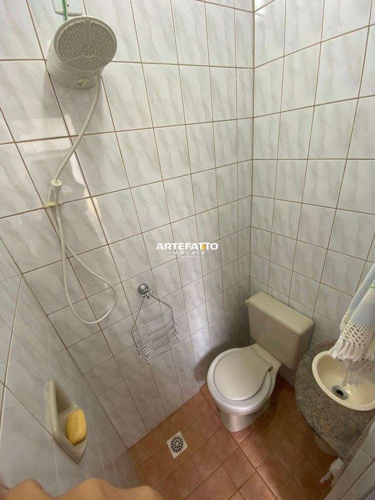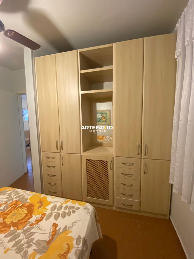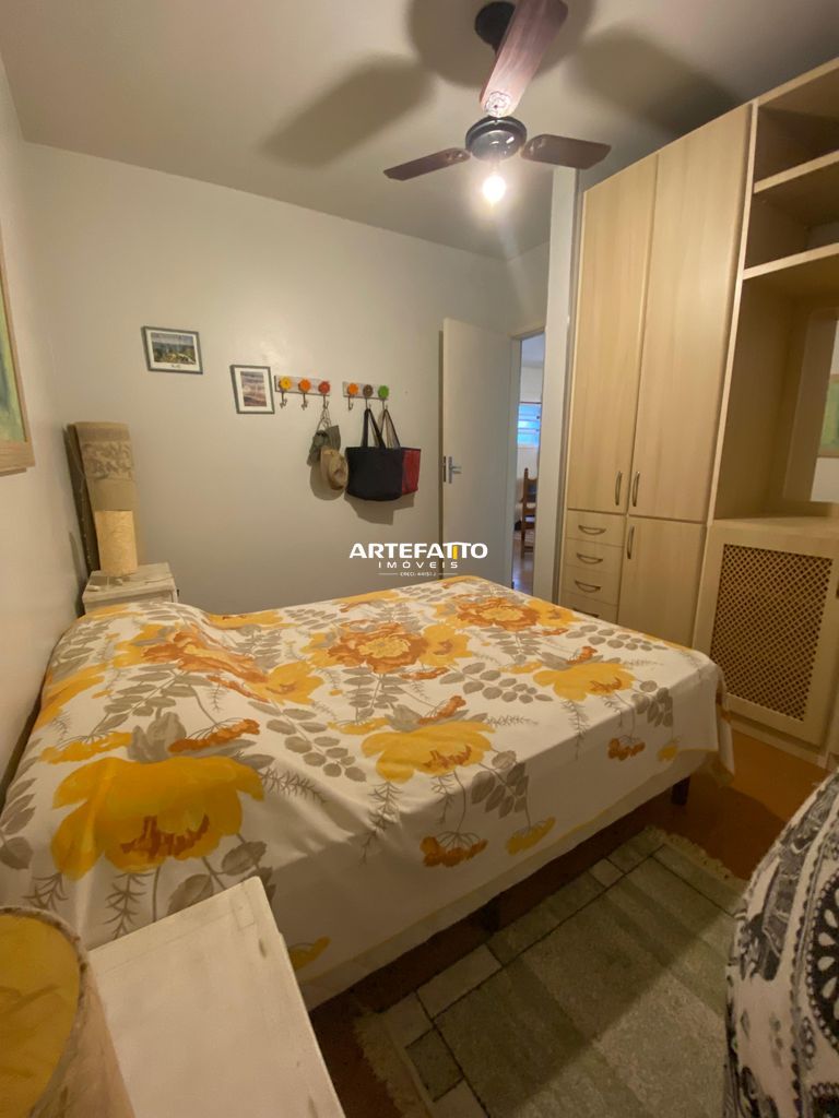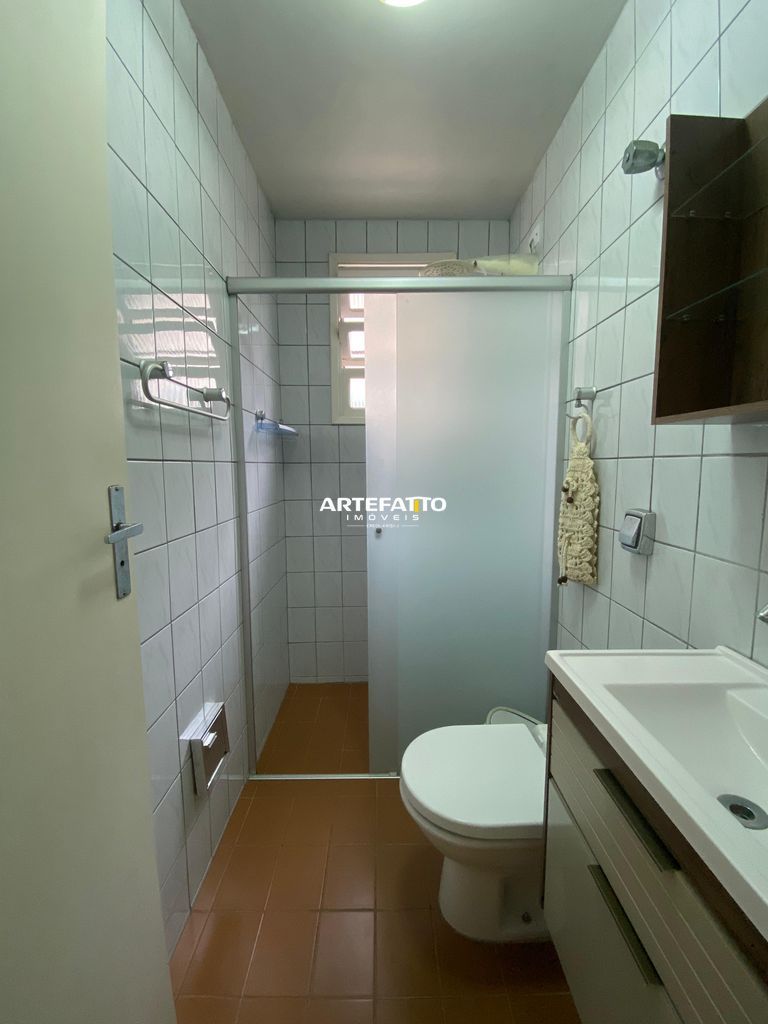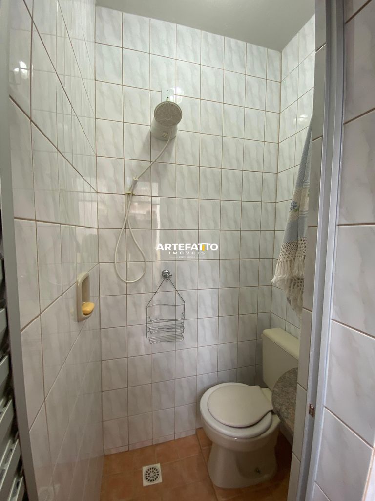 O apartamento conta com dois dormitórios, um banheiro social com box em blindex, uma sala de visitas conjugada com a sala de jantar, cozinha americana com armários planejados.
