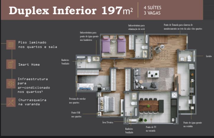 3 suítes ou 4 dormitórios (2 suítes)