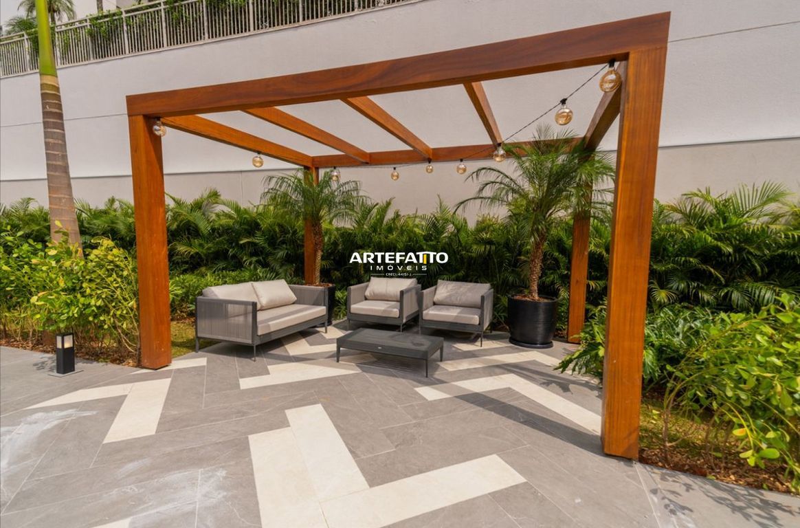 Hall social, lobby, piscina com raia de 25 m, piscina infantil, deck molhado, solarium, lounge bar, praça com espelho d água, estar externo, estar sob pergolado, churrasqueiras com forno de pizza, espaço Gourmet, terraço gourmet, lounge festas, sauna/ descanso, academia, sala de spinning, sala para aulas de ginástica, quadra recreativa, mini quadra recreativa, pet place, horta, redário, grand playground, brinquedoteca, sala de jogos e coworking.