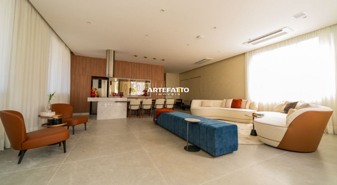 Hall social, lobby, piscina com raia de 25 m, piscina infantil, deck molhado, solarium, lounge bar, praça com espelho d água, estar externo, estar sob pergolado, churrasqueiras com forno de pizza, espaço Gourmet, terraço gourmet, lounge festas, sauna/ descanso, academia, sala de spinning, sala para aulas de ginástica, quadra recreativa, mini quadra recreativa, pet place, horta, redário, grand playground, brinquedoteca, sala de jogos e coworking.