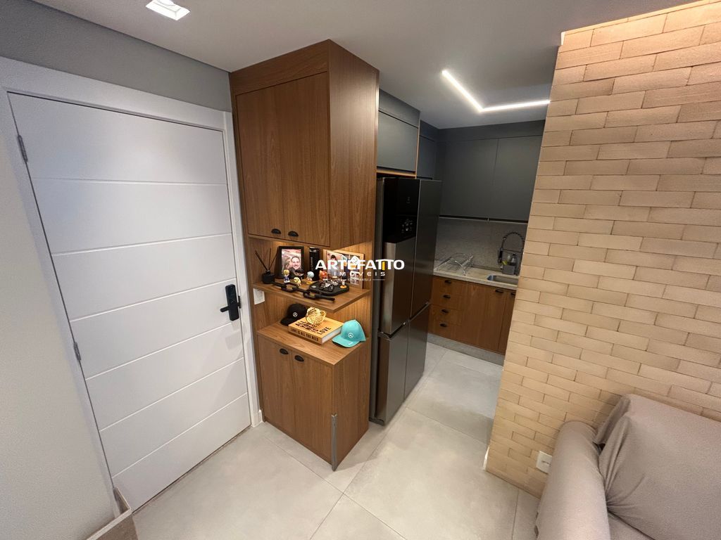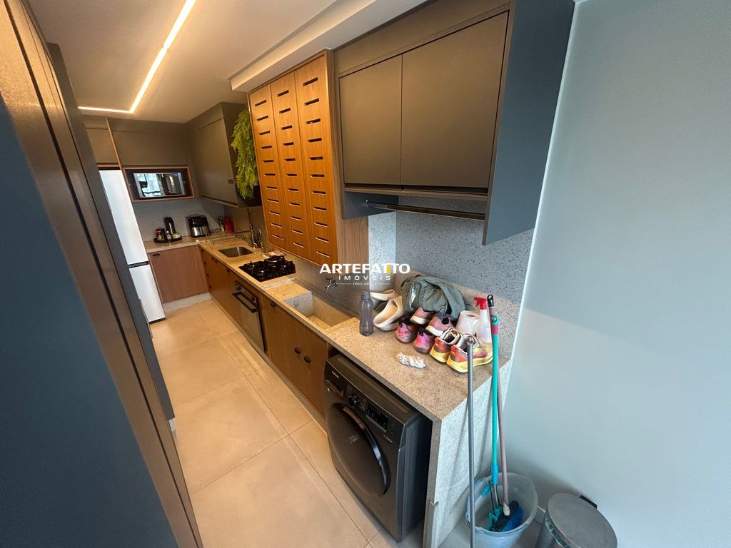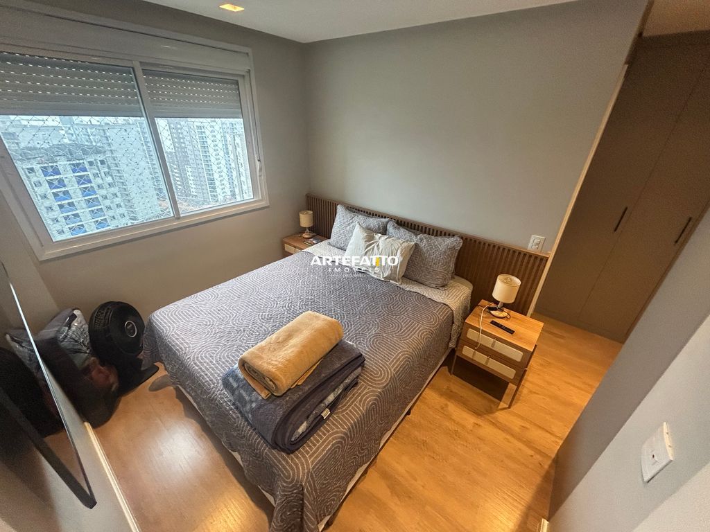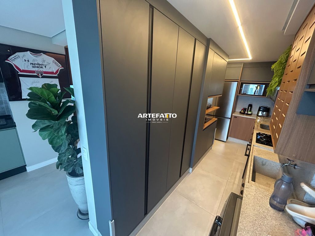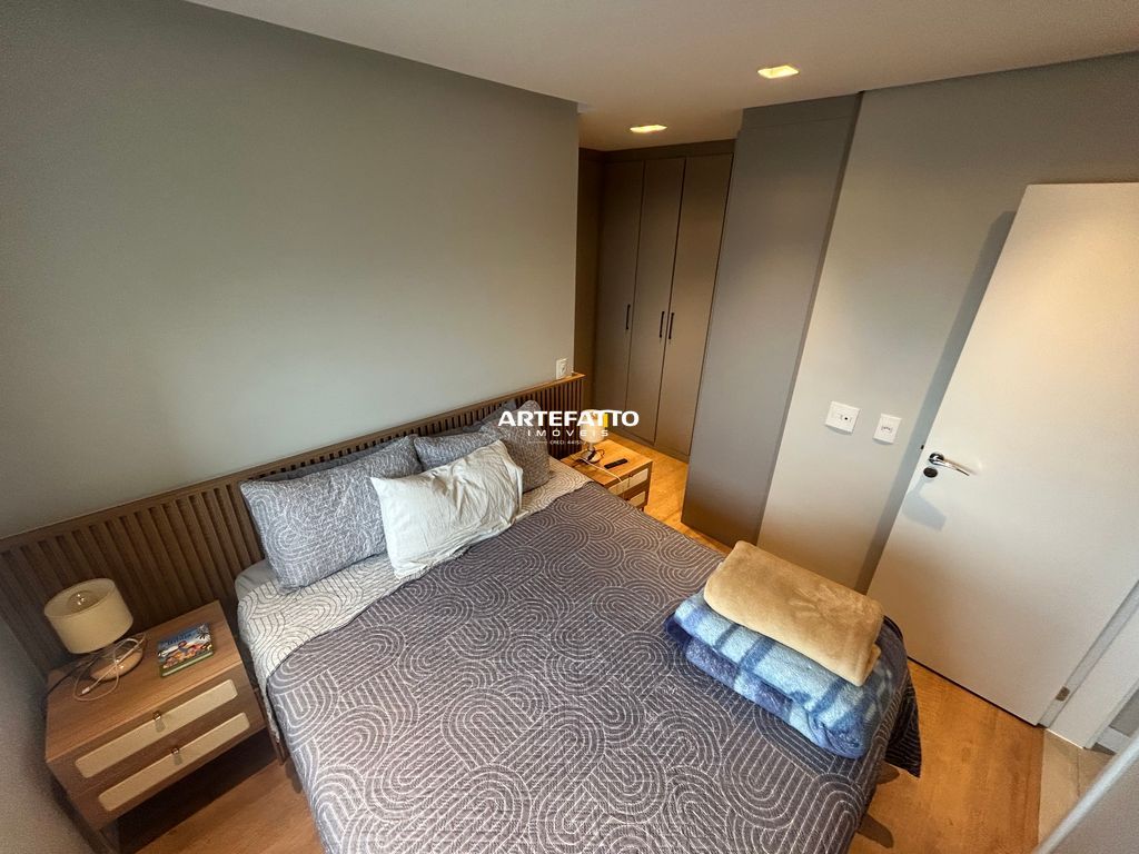 Apartamento com 1 suíte, 2 vagas de garagem e depósito privativo, totalmente mobiliado e decorado com armários de alta qualidade e garantia de 15 anos.