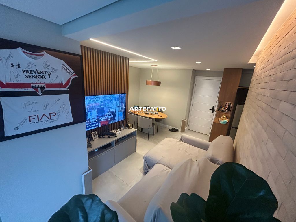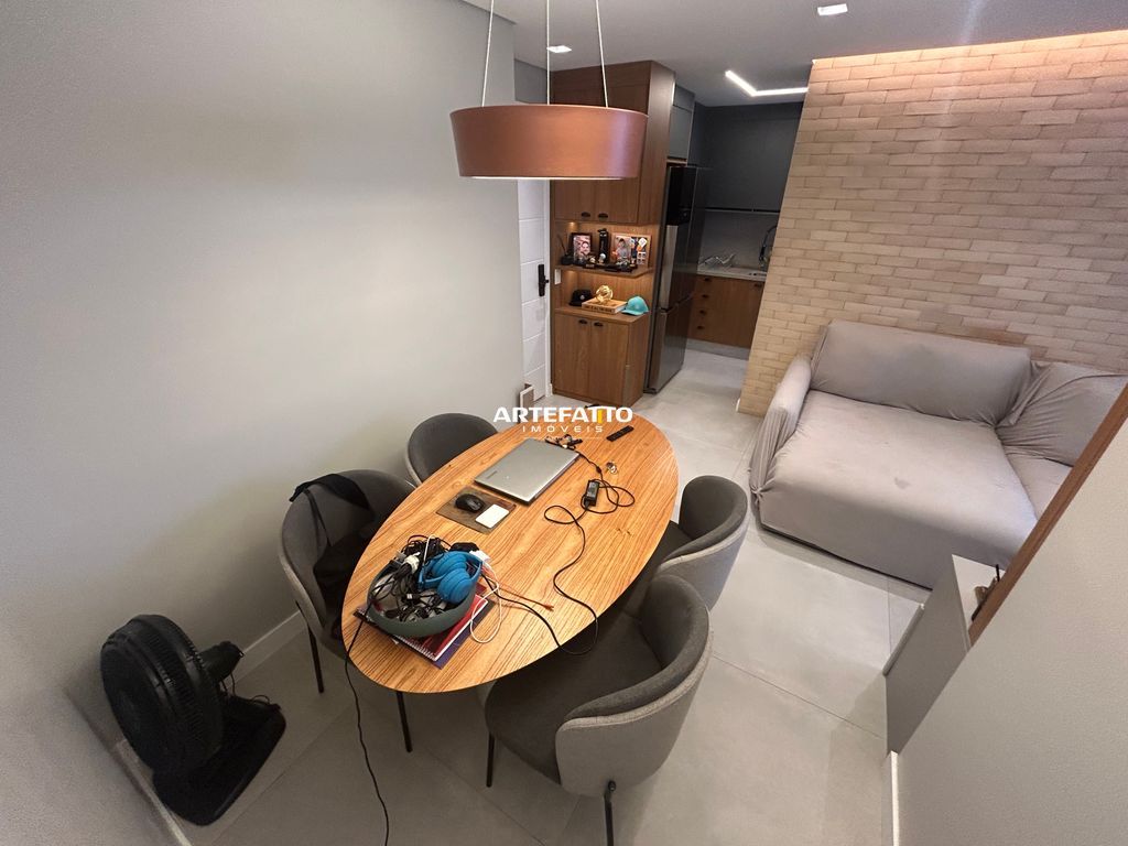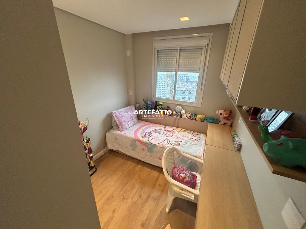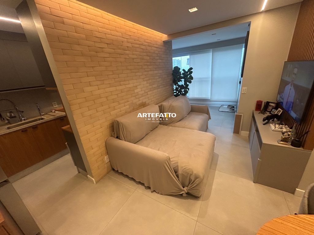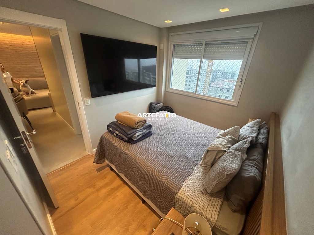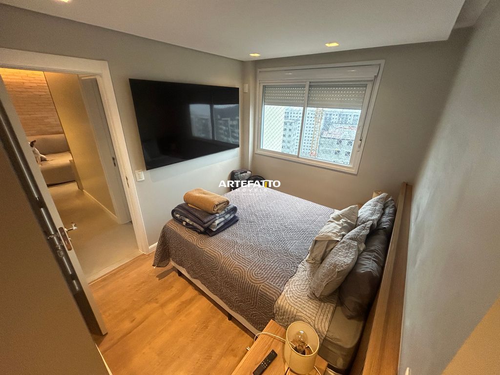 Apartamento com 1 suíte, 2 vagas de garagem e depósito privativo, totalmente mobiliado e decorado com armários de alta qualidade e garantia de 15 anos.