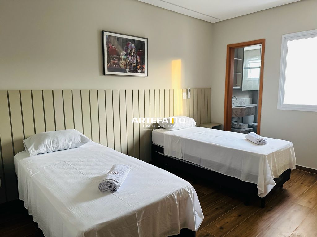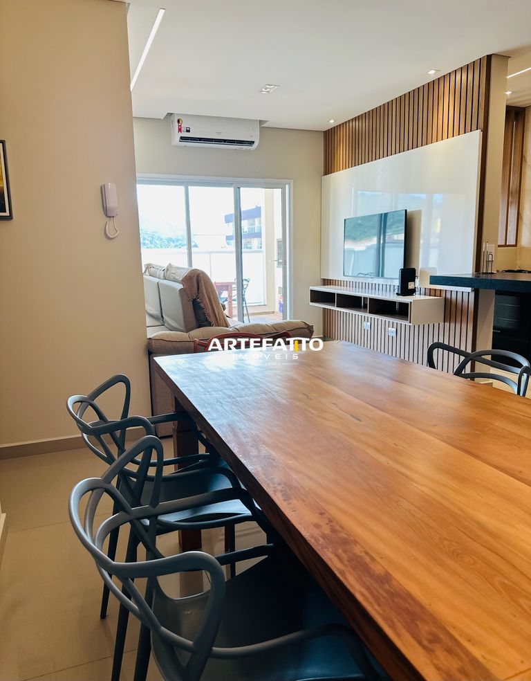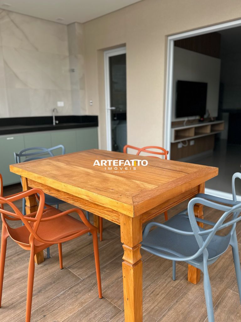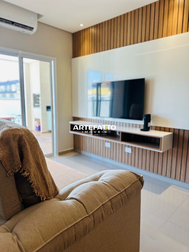A área social é integrada e se destaca pela varanda gourmet com churrasqueira, perfeita para momentos de lazer e confraternização. O imóvel está mobiliado completo, ideal para quem busca praticidade — é entrar e morar.