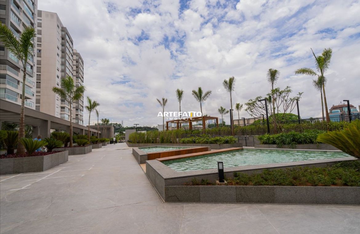 Hall social, lobby, piscina com raia de 25 m, piscina infantil, deck molhado, solarium, lounge bar, praça com espelho d água, estar externo, estar sob pergolado, churrasqueiras com forno de pizza, espaço Gourmet, terraço gourmet, lounge festas, sauna/ descanso, academia, sala de spinning, sala para aulas de ginástica, quadra recreativa, mini quadra recreativa, pet place, horta, redário, grand playground, brinquedoteca, sala de jogos e coworking.