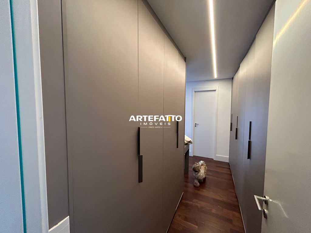 Cada detalhe do projeto interno foi cuidadosamente planejado para entregar elegância e funcionalidade. Ambientes amplos, totalmente equipados com armários planejados de alto padrão, maximizando espaço e organização. O projeto de iluminação valoriza a arquitetura e cria cenários acolhedores, enquanto o sistema de som ambiente integrado eleva a experiência de viver, trazendo praticidade e bem-estar no dia a dia.