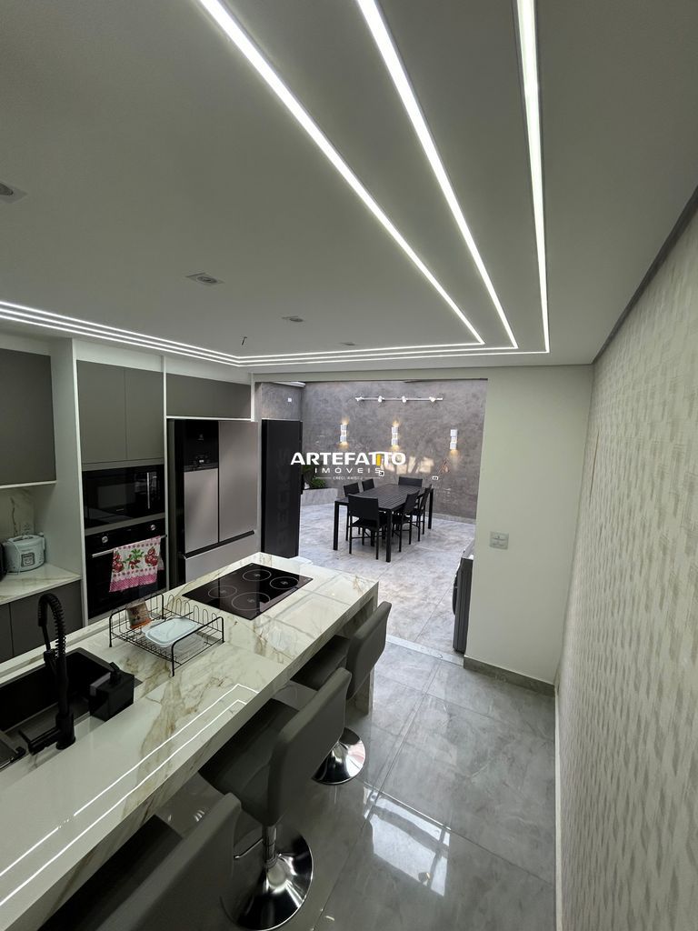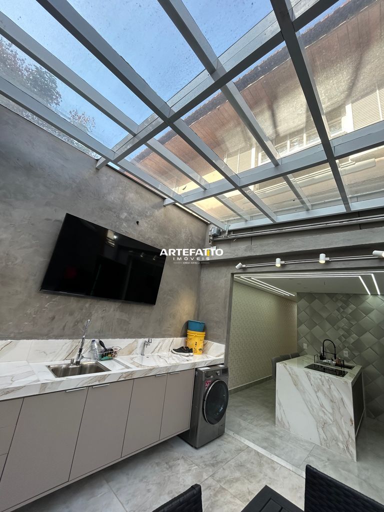 03 dormitórios (01 Suíte); 02 vagas, 03 banheiros, 01 lavabo, amplo quintal com área gourmet impecável com teto retrátil .